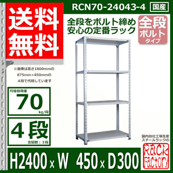 スチールラック 幅45×奥行30×高さ240cm 4段 耐荷重70/段 棚板の追加や移動が自由自在 幅45×D30×H240cm軽量棚 スチール棚 業務用 収納棚 整理棚 ラック